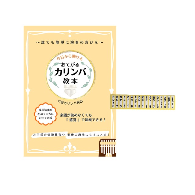 おてがるカリンバ教本とシールのセットでお得に購入できます。 シールは単体で販売しているものですが、白のシール1枚 とセットでの販売です。 教本とセットで使用していただきますと、より簡単にカリンバの演奏ができるようになります。
